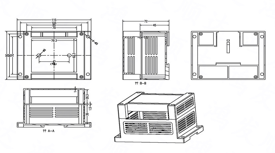 產(chǎn)品用途:廣泛應(yīng)用于電子行業(yè)中各種PLC模塊電路、控制器單元、配電器模塊等 。具有完全絕緣性保護(hù)、散熱性良好等特點。均采用ABS/PC原料生產(chǎn),符合ROHS環(huán)保標(biāo)準(zhǔn)、性能好、耐高溫,不加入任何再生料??筛鶕?jù)客戶要求重新開模具。