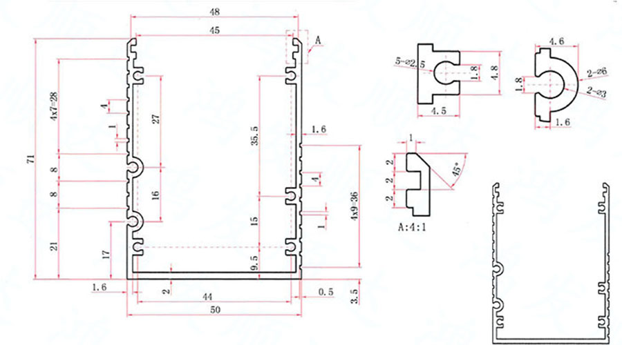 【產(chǎn)品材料】:6063擠壓鋁型材